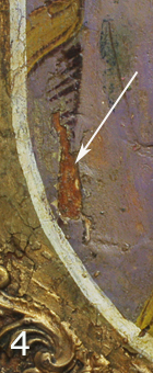 Im Weiteren folgte die vorsichtige Abnahme des stark vergilbten Firnis (s. Abb. 1, 2, 3).