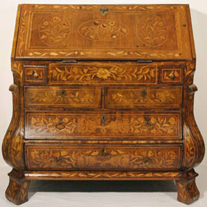 Durch intensive Wassereinwirkung waren große Bereiche des Furniers (Marketerie) des Sekretärs geschädigt, teilweise sogar unwiederbringlich zerstört. Darüber hinaus waren einzelne gelöste Holzverbindungen festzustellen.