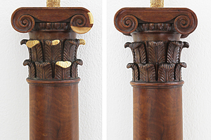 Danach wurden Lindenholzstücke eingeleimt und die Akanthusblätter und das ionische Element nachgeschnitzt.